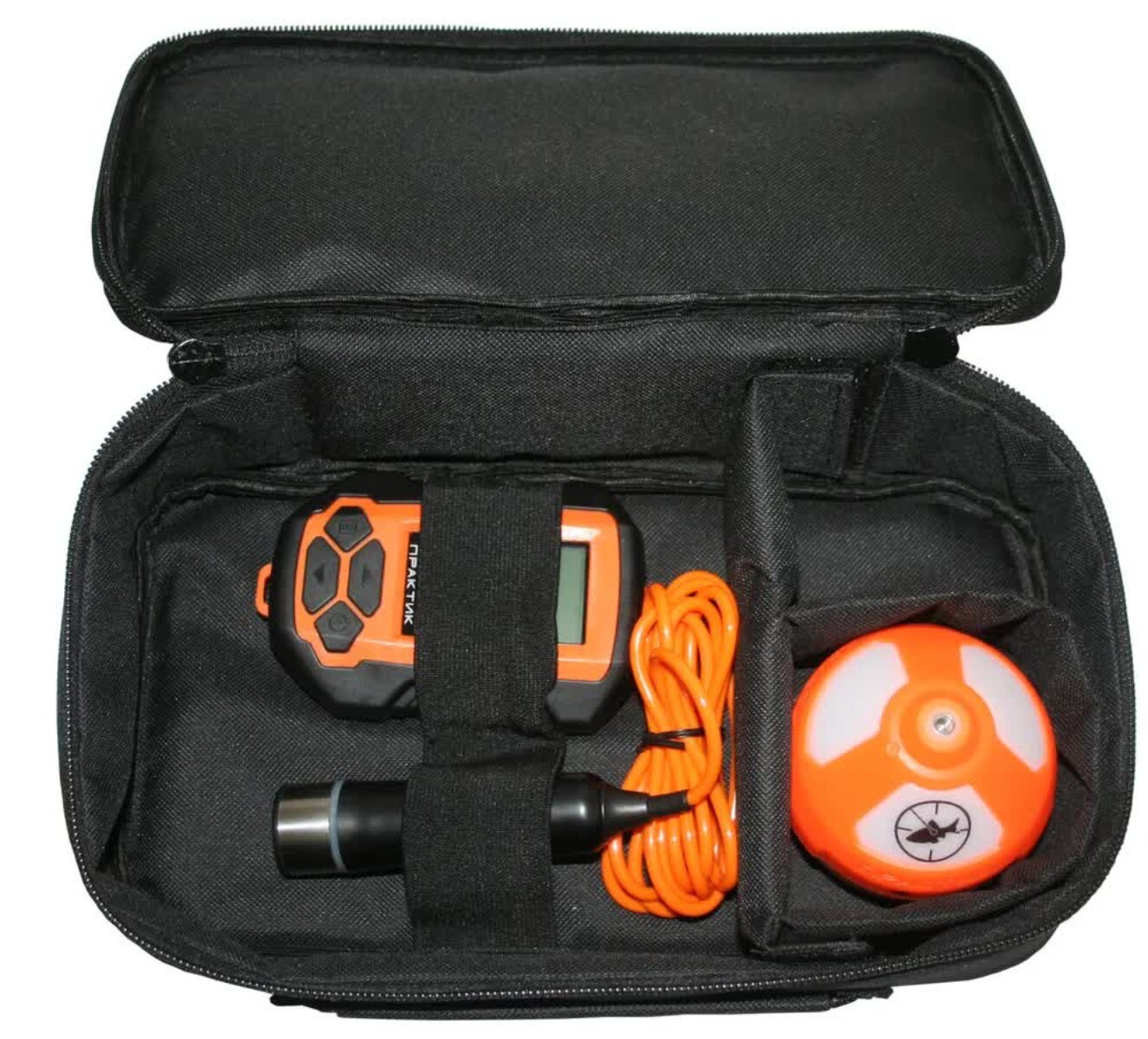 В сумку помещается любой эхолот (даже в унибоксе) и аксессуары, используемые на рыбалке. Очень удобно хранить и транспортировать все элементы эхолота в одном месте.