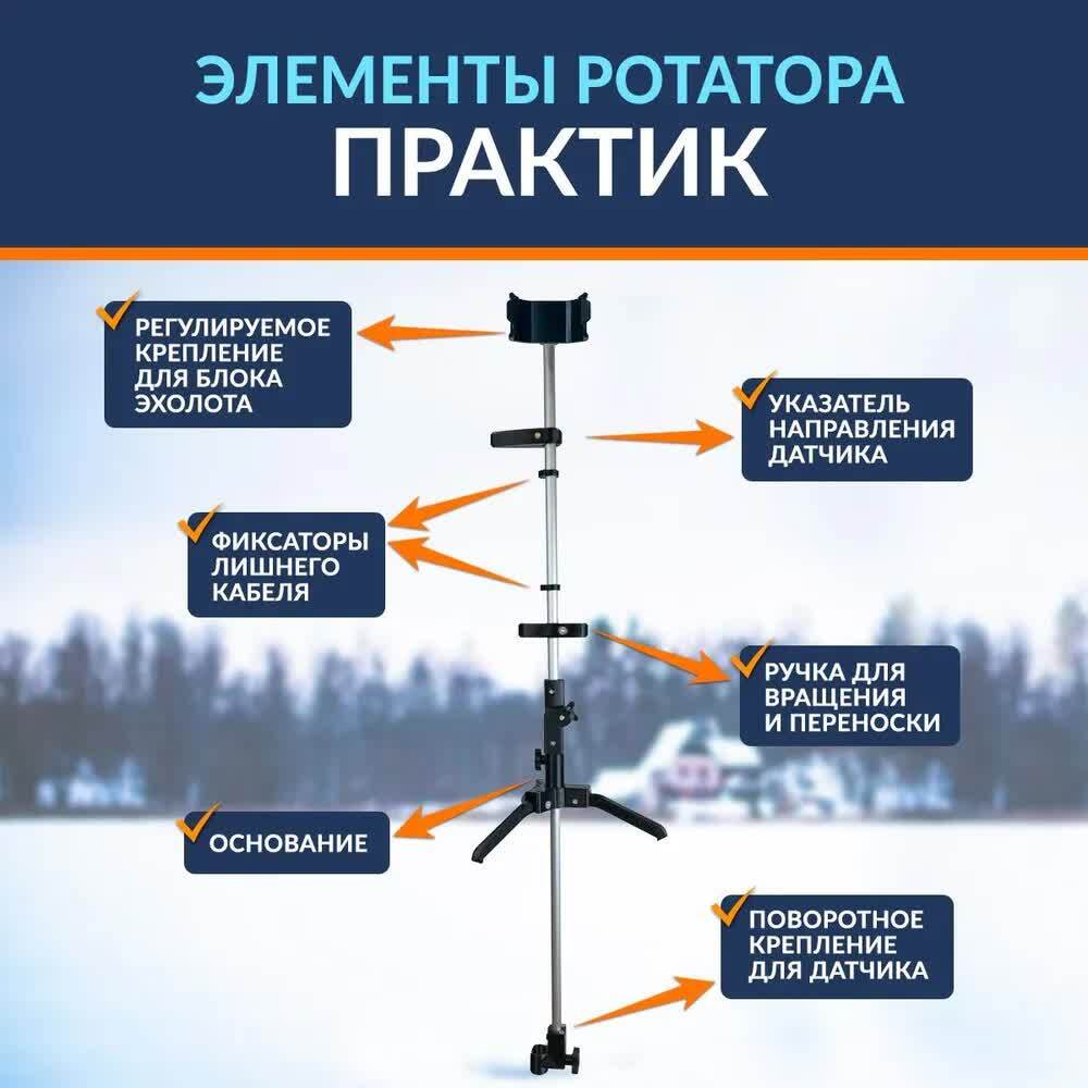 Поворотный зимний ротатор Практик– это компактный и удобный аксессуар для жесткой фиксации датчика эхолота в лунке.